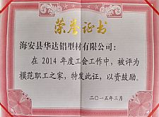 • 模范職工之家證書
